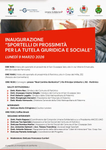 Inaugurazione “Sportelli di prossimità per la tutela giuridica e sociale” – Gestione del servizio dei punti decentrati di informazione e di accesso alle procedure di protezione per le persone fragili che vivono in luoghi territorialmente distanti dall’Ufficio Giudiziario – presso le sedi dei Comuni di San Giuseppe Iato e Partinico.