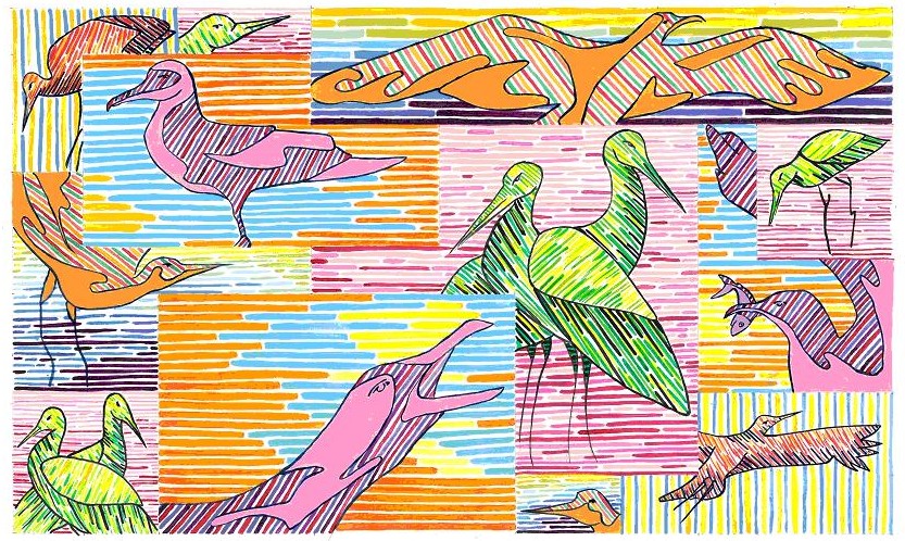 L’opera è stata realizzata a fronte di una ricerca iconografica sulla riserva Orientata di Ustica dove il gruppo di lavoro ha colto l’ispirazione, per il soggetto del murale, dall’avifauna presente nell’isola. La composizione si modula attraverso degli schemi geometrici, nella quale predomina la linea orizzontale che scandisce le forme stilizzate degli uccelli. Un chiaro riferimento storico-stilistico alla Pop Art si evidenzia nei colori e negli schemi compositivi.