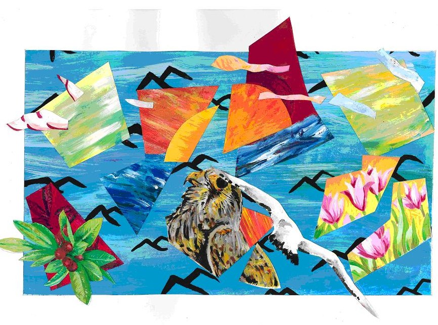 Tecnica utilizzata: acrilici su cartoncino, collage.